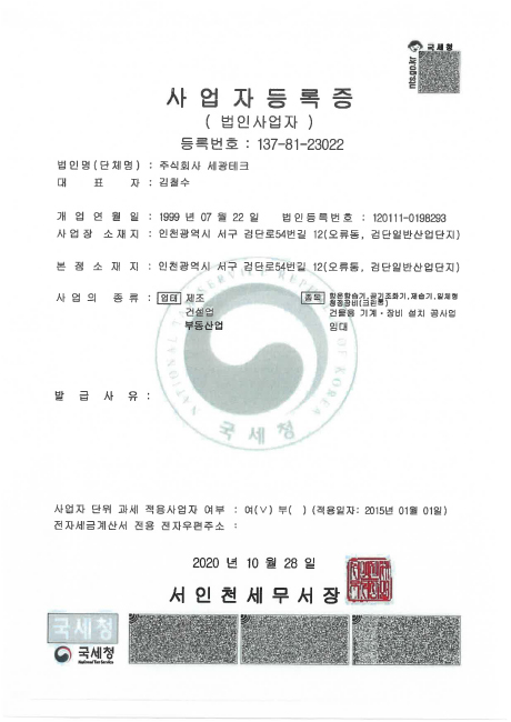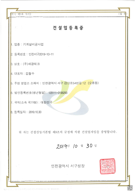 ³Ãµ¿±âÁ¦Á¶µî·ÏÁõ¸í¼